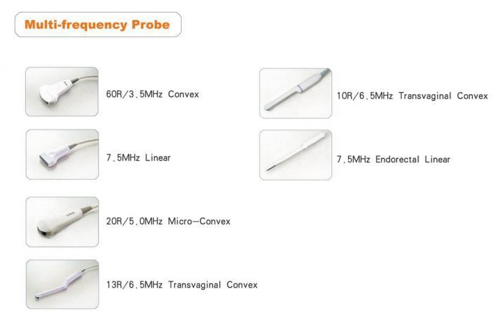 6.5 MHz Transvaginal Probe: 5.5-7.5 MHz dùng để siêu âm tổng quát và khám phụ khoa.